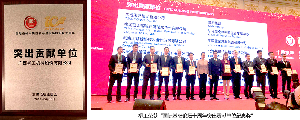 ? ? ? ??在國際基礎(chǔ)設(shè)施投資與建設(shè)高峰論壇十周年招待晚宴上,柳工榮獲了“國際基建論壇十周年突出貢獻(xiàn)單位紀(jì)念獎”榮譽(yù)。