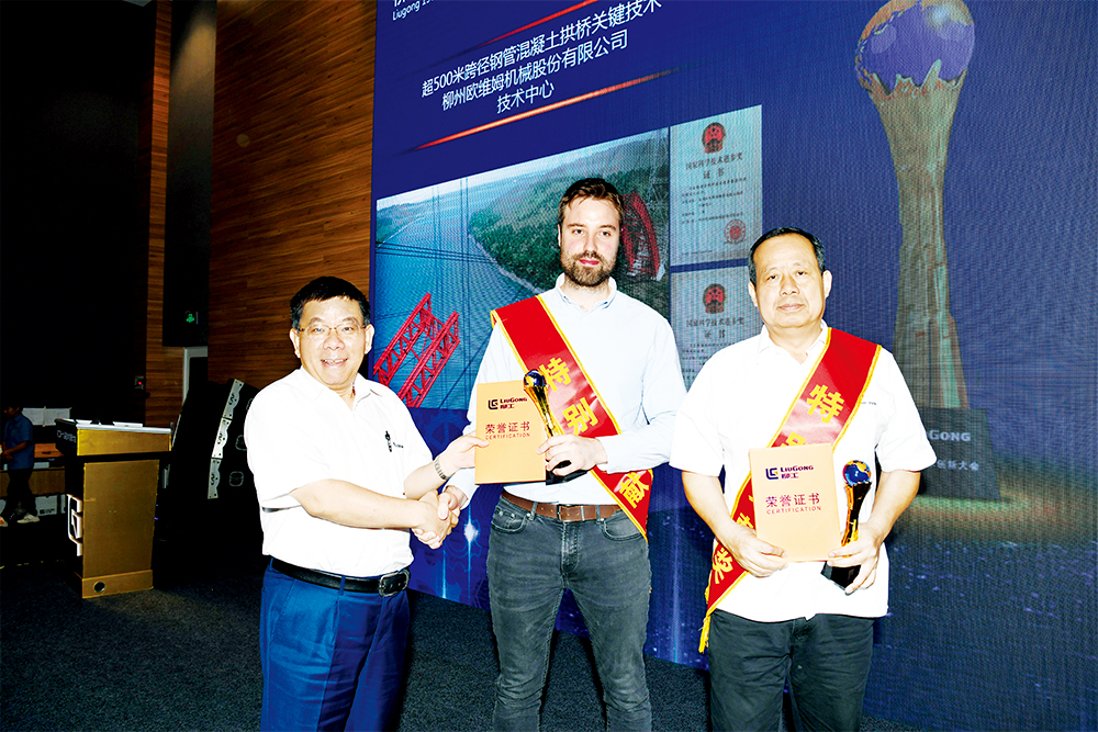 同時(shí),大會還對公司柳工2018年來涌現(xiàn)的優(yōu)秀技術(shù)人員、優(yōu)秀產(chǎn)品經(jīng)理和優(yōu)秀技術(shù)創(chuàng)新項(xiàng)目等獲獎(jiǎng)代表進(jìn)行了表彰,其中,柳工集團(tuán)歐維姆公司的超500米跨徑鋼管混凝土拱橋關(guān)鍵技術(shù)項(xiàng)目和股份公司的CLG4180D平地機(jī)項(xiàng)目獲得特別貢獻(xiàn)獎(jiǎng);CLG870H 裝載機(jī)研發(fā)項(xiàng)目獲得明星產(chǎn)品獎(jiǎng);多場耦合分析與實(shí)驗(yàn)在挖掘機(jī)聲振熱控制中的應(yīng)用項(xiàng)目獲得新技術(shù)應(yīng)用獎(jiǎng);CLG6526E/6530E輪胎壓路機(jī)產(chǎn)品開發(fā)獲得項(xiàng)目LDP執(zhí)行獎(jiǎng)。