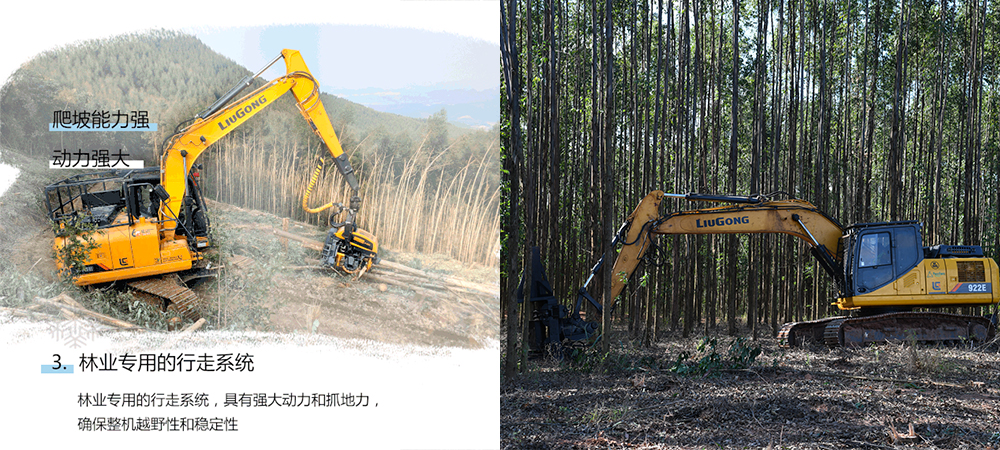 柳工林業(yè)采伐機(jī)不僅繼承了柳工傳統(tǒng)挖掘機(jī)的卓越性能,同時(shí)匹配林業(yè)專用的液壓系統(tǒng)和防護(hù)系統(tǒng),具備良好的操作舒適性和安全性,適用于林木采伐、造材、歸堆。