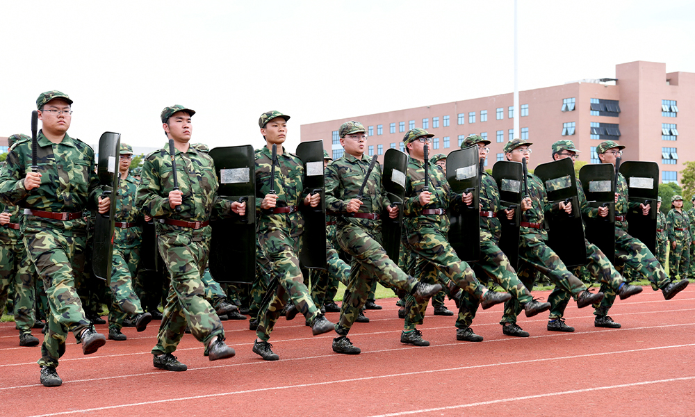 軍訓(xùn)會操中,各方隊都拿出了最佳狀態(tài),整齊劃一的男子方隊、英姿颯爽的女子方隊、氣勢如虹的警棍盾牌方陣,將百折不撓、堅定不移的軍魂體現(xiàn)得淋漓盡致。
