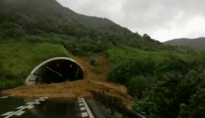 臺(tái)風(fēng)過(guò)后,公路隧道口被滑坡的泥土和雜樹(shù)遮蓋
