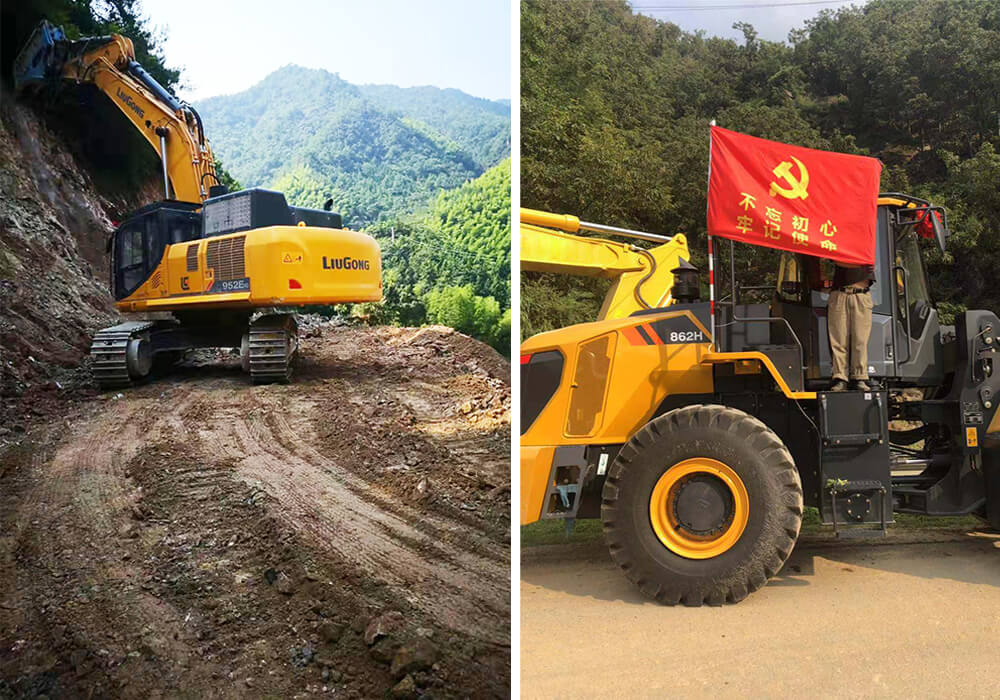 后期浙江柳瑞又新增三臺(tái)柳工設(shè)備趕赴其他受災(zāi)地區(qū)。1臺(tái)939E和1臺(tái)952EHD挖掘機(jī)支援323省道處理塌方;1臺(tái)862H裝載機(jī)支援昌化搶險(xiǎn)。
