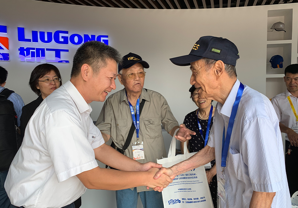 廣西柳工機械股份有限公司總裁黃海波在柳工展臺接待了來訪的20位中國機械部老領導,重點介紹了柳工新能源設備和5G遠程遙控設備。