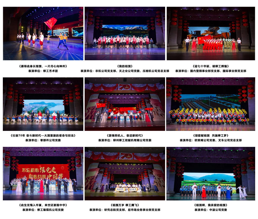 24家基層單位組成的10支表演團隊依次登臺,用詩歌、音樂、舞蹈重溫激情歲月,表達柳工人對偉大祖國的赤子之情,唱響昂首新時代,共筑中國夢的時代主旋律。