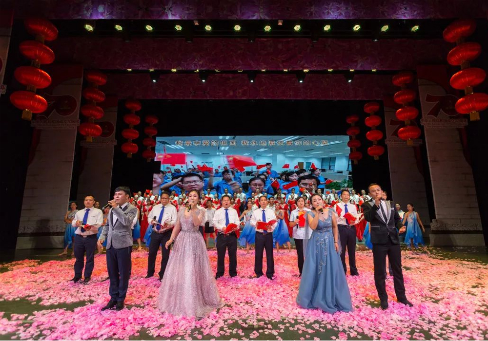 當耳熟能詳、歷久彌新的《我和我的祖國》響起,伴隨著熟悉的旋律,全場洋溢著“我和祖國一刻不能分離”的真情。巨幅的五星紅旗在舞臺上徐徐鋪開,從舞臺向全場傳遞,大家手捧著鮮艷的五星紅旗,祝福偉大祖國繁榮富強,兩個小時的晚會圓滿結束。