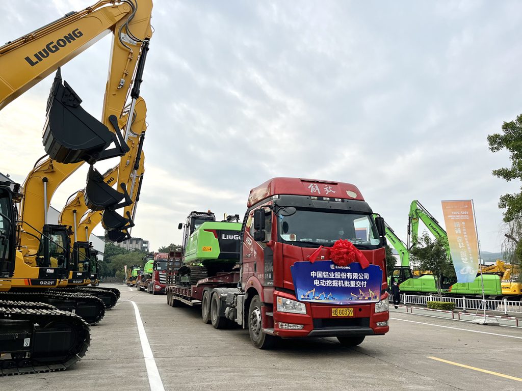 發(fā)布會現(xiàn)場,廣西柳工機械股份有限公司執(zhí)行董事、高級副總裁文武將中國首臺智能遙控拖電挖掘機的金鑰匙正式交付中國鋁業(yè)股份有限公司客戶。本次交付的設備將用于礦山喂料口破碎作業(yè),為客戶帶來低碳增效解決方案,將為遙控電動工程機械在實際工況的運用提供經(jīng)驗。